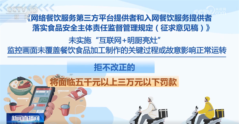 按照收罗看法稿,平台收到市场监视办理部分关于入网餐饮办事供给者违法违规行为消息等传递未采纳响应办法的;采纳办法后私行恢复入网餐饮办事供给者线上运营办事的;以及未将入网餐饮办事供给者运营天分取省级市场监视办理部分从体天分消息进行校验比对等行为将面对五万元以上二十万元以下罚款。