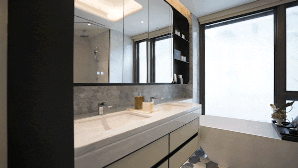 别的,室内窗户全都采用了旭格系统窗,最厚达125mm,远超市道上豪宅的支流厚度,关上门窗的霎时,室外的嘈杂几乎被完全!
